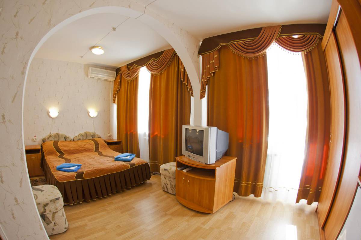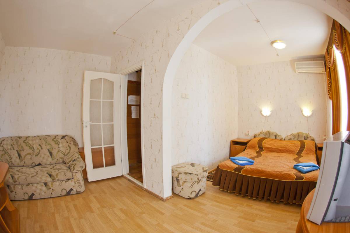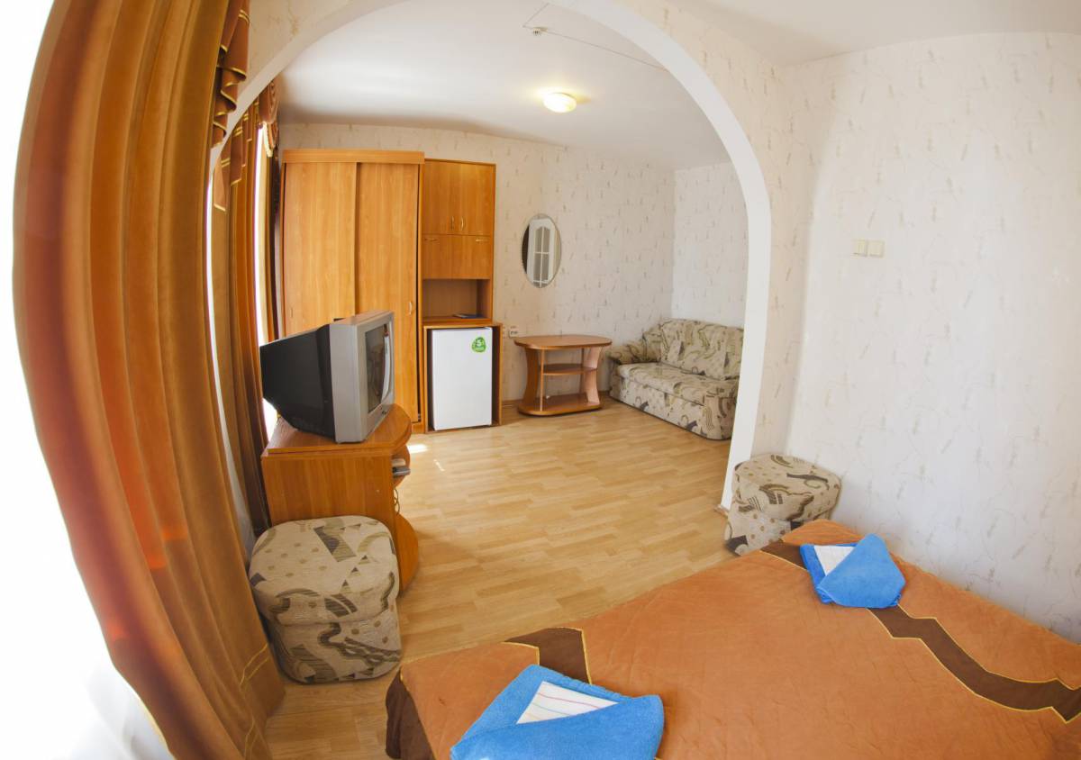 2 осн. места. 1 доп. место. Балкон. Мебель: вешалка, диван, зеркало, кровать двуспальная, прикроватные тумбочки, раскладушка, стол, стул, шкаф. Оборудование: кондиционер, мини-холодильник, телевизор. Санузел: с душем, туалетные принадлежности. Сервис: смена полотенец, смена постельного белья, уборка номера.
